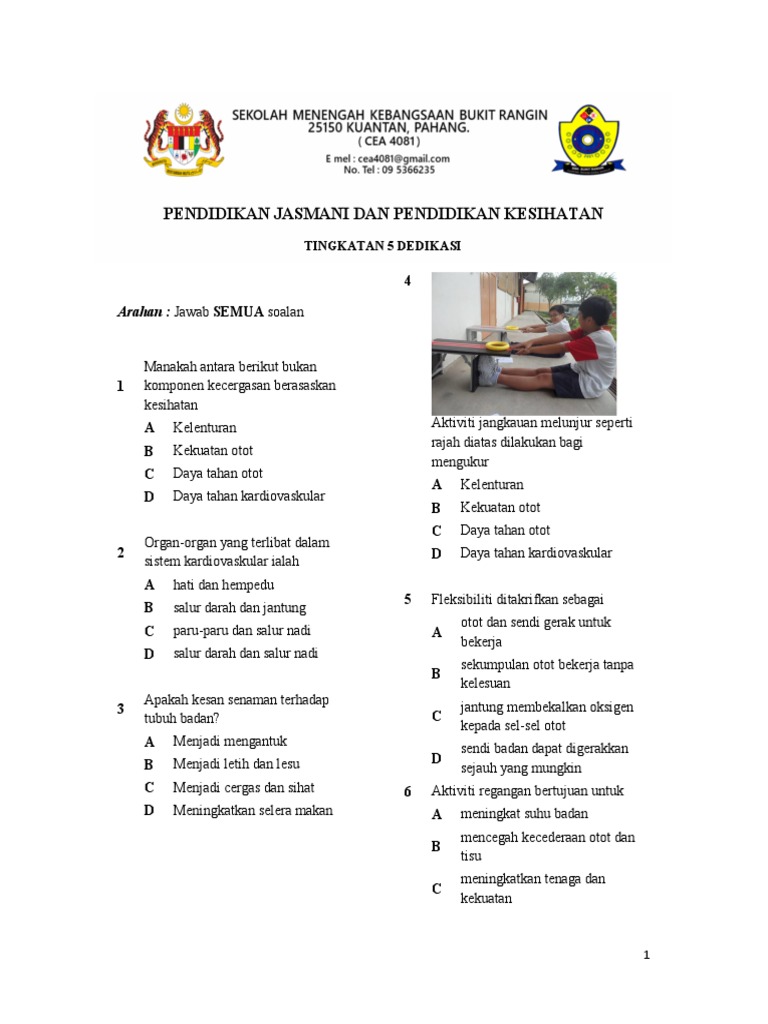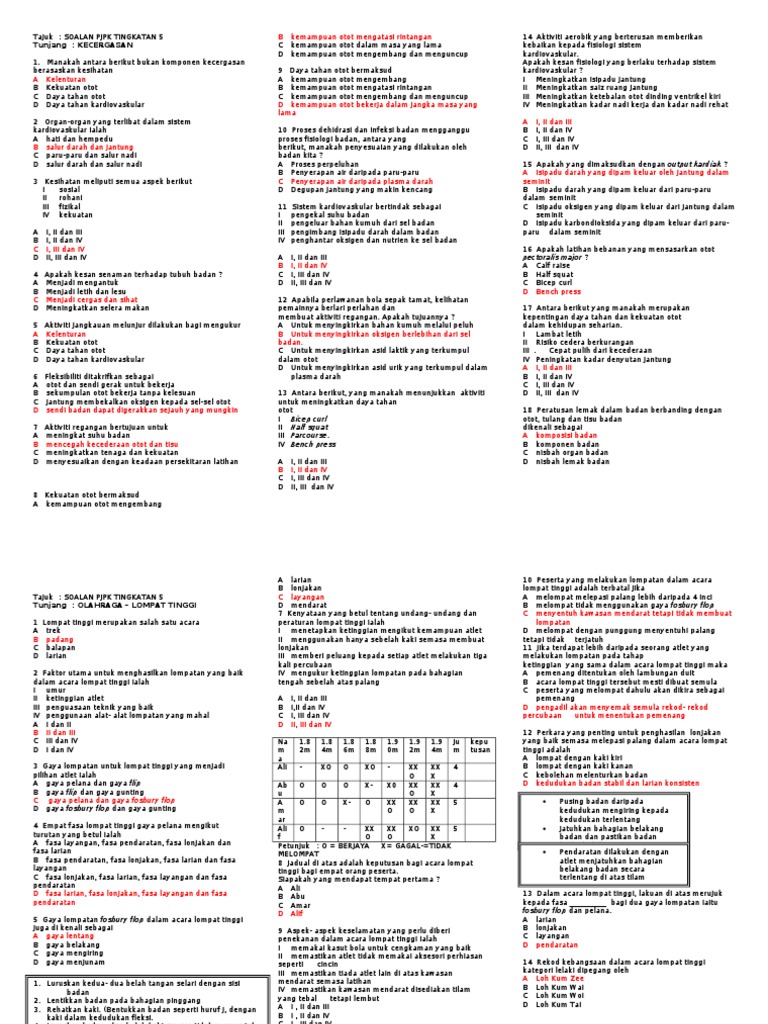Bank Soalan Pendidikan Jasmani Pendidikan Kesihatan Pjpk Tingkatan 5 Pdf
